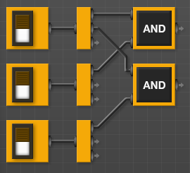 An easy way to do this is to “split the signal” of each input, so, we can use it in multiple places. Simply reuse the same switch output and hook one up to each of the inputs.