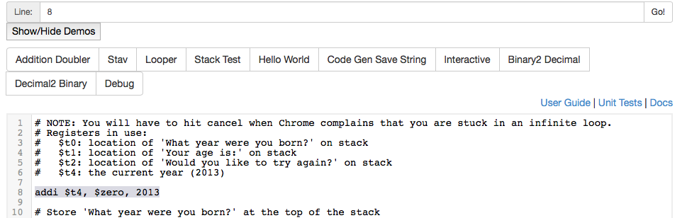 As a final machine language challenge, modify the “Interactive” demo (the first lines are in the image above) to use the current year when computing the ages. When you have it running, see the Programming Problem List.